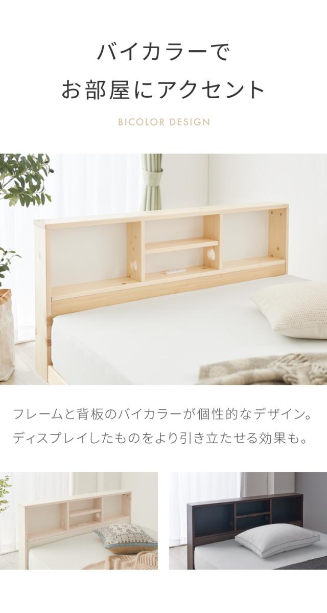 すのこベッド 高さ3段階調整 宮棚付き/バイカラー