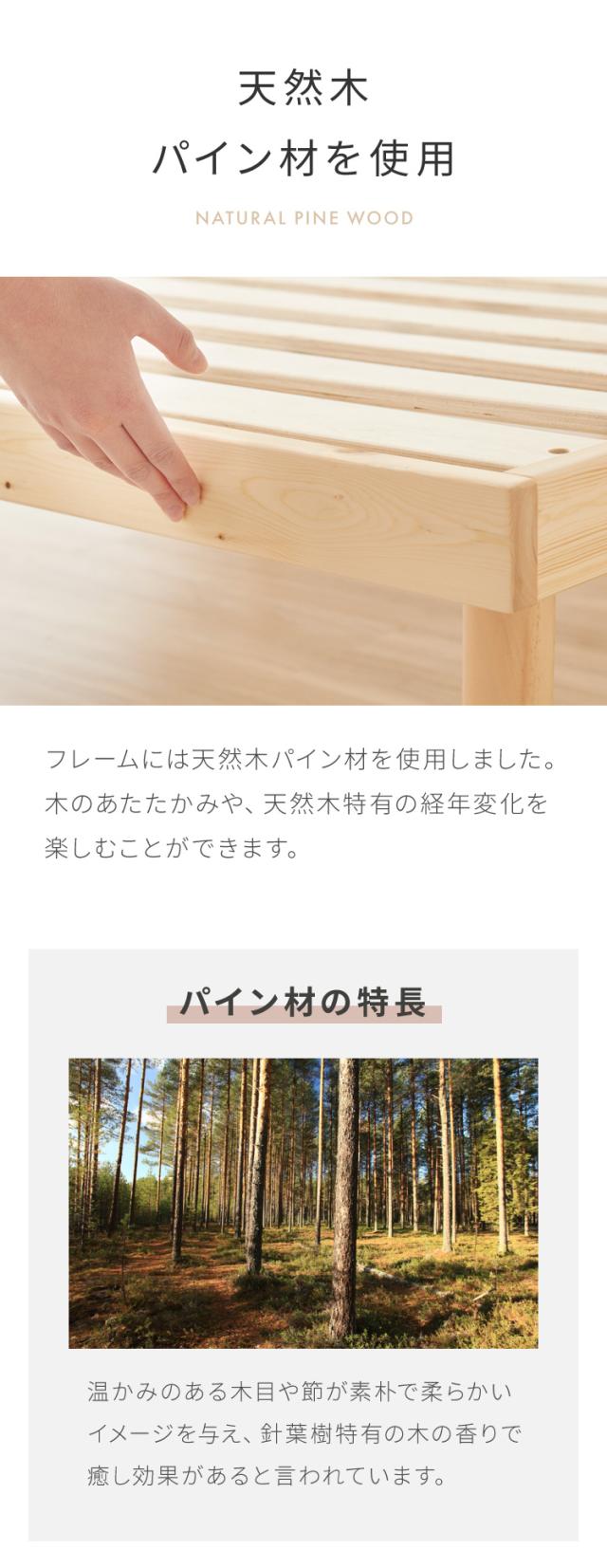 天然目パイン材を使用したベッドフレーム「ミッシェル」とポケットコイルマットレスのセットになります。