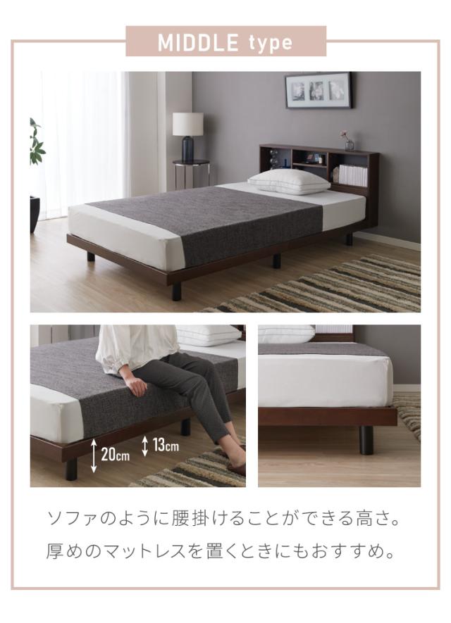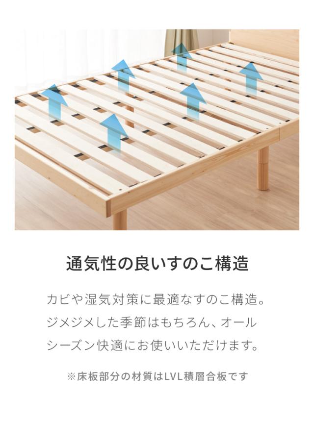すのこベッド ウェンディ 宮棚付き 高さ3段階調整