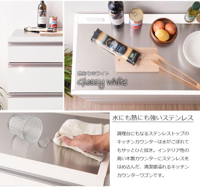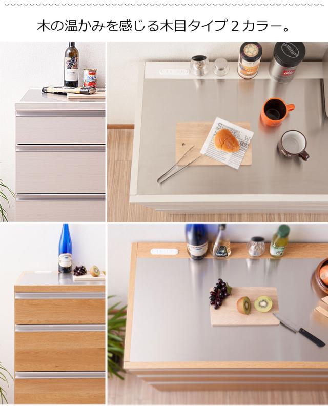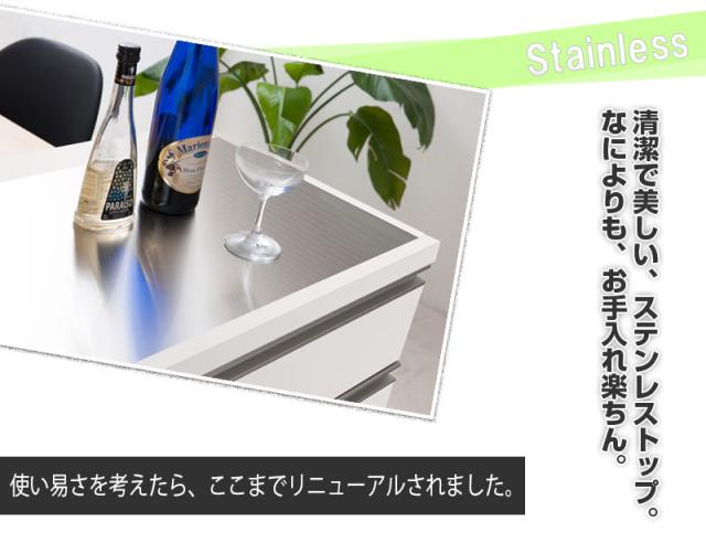 ■商品の仕様/前板:強化プリント紙化粧繊維板、天板:ステンレス貼り、その他:プリント紙化粧