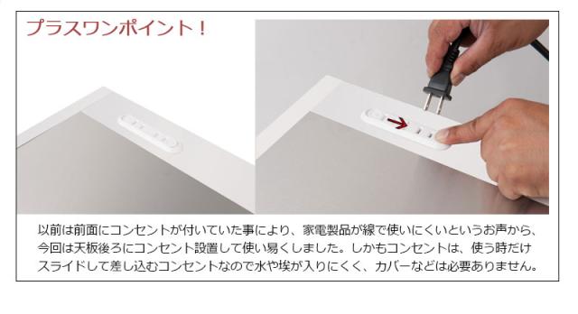 インテリア性を重視したデザイン、収納しやすさを追求した引出、家電製品の配線を考慮したコンセント、間仕切りとしても使えるスッキリとした背面。