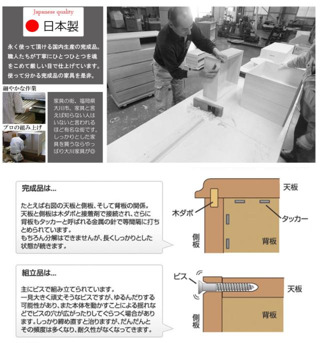 - 引き出しがすごし剥がれていり、これは本当に日本製の商品なのか不安に思いました。 カウンターの角が尖っていて危ないです。 やはり家具は見て買った方がいいと後悔してしまいました。配送も玄関までなので少し大変でした。