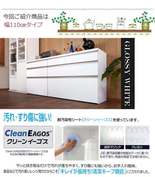 日本製 完成品 大川家具 キッチンカウンター 収納 幅110 110幅 レンジラック カウンター 食器棚 大容量 ホワイト 白 おしゃれ 北欧(代引不可)【送料無料】