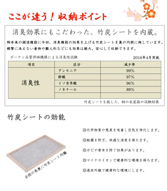 ■商品の仕様/本体:天然木(桐材)、天板・底板:天然木桐化粧板、蓋裏面:竹炭シート内蔵不織布