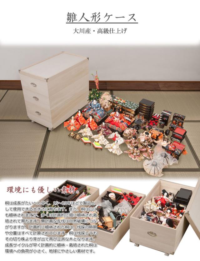 収納ケース、桐材、大川、雛人形入れ、人形入れ、新生活、ひな祭り、国産収納