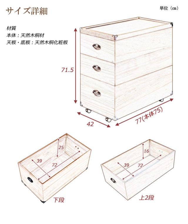 ■商品の仕様/本体:天然木(桐材)、天板・底板:天然木桐化粧板、蓋及び上2段裏面:竹炭シート内蔵不織布