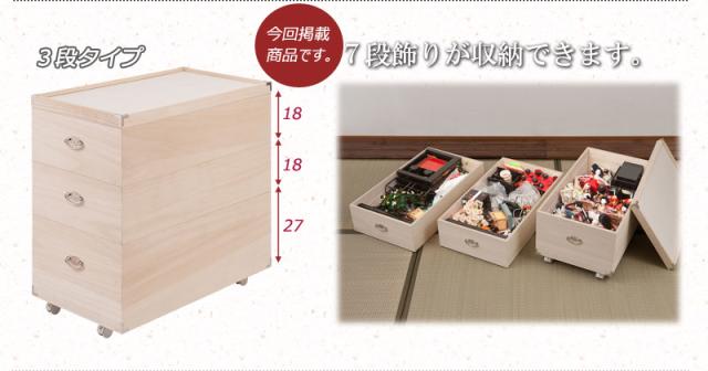 日本製 大川家具 桐 雛人形収納 3段 消臭 竹炭シート入り 収納 桐収納 雛人形 国産 三段 竹炭 消臭 防臭 木目調 収納箱(代引不可)【送料