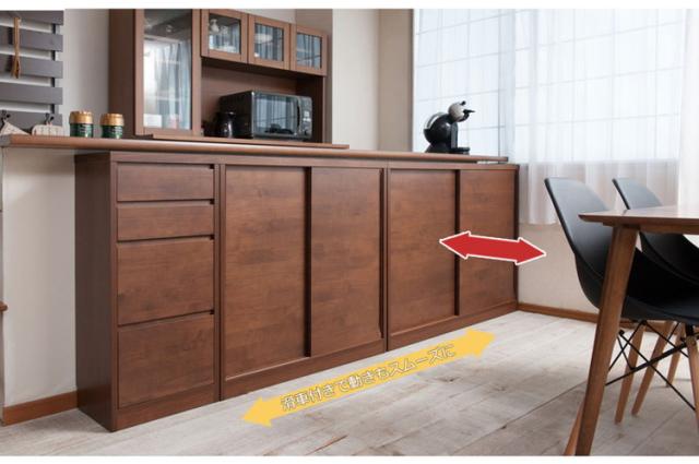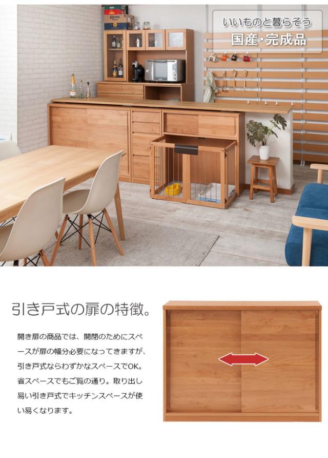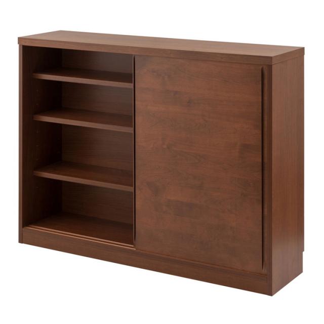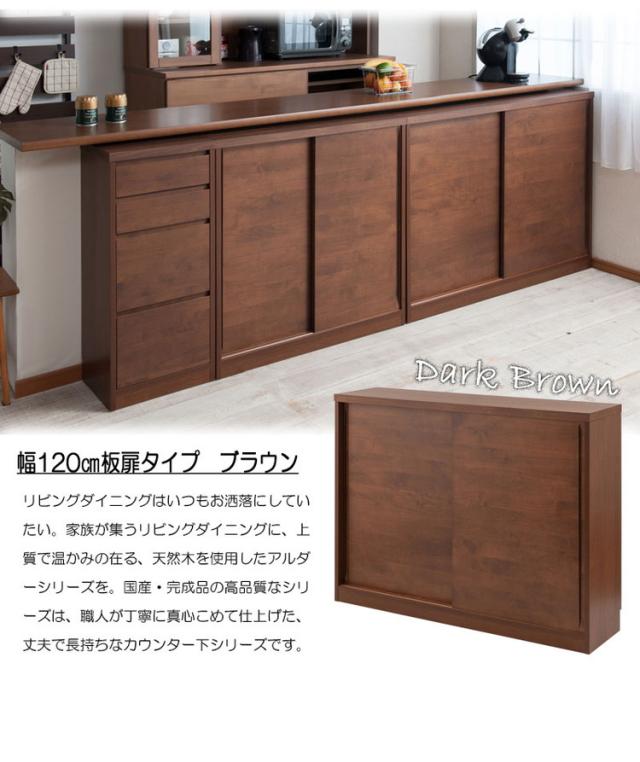 キャビネット 幅120 ダークブラウン 引き戸 引戸 モダン 北欧 おしゃれ カウンター下 カウンター下収納 省スペース 窓下収納 キッチン キッチン収納 リビング 国産 完成品 天然木アルダー材(代引不可)【送料無料】