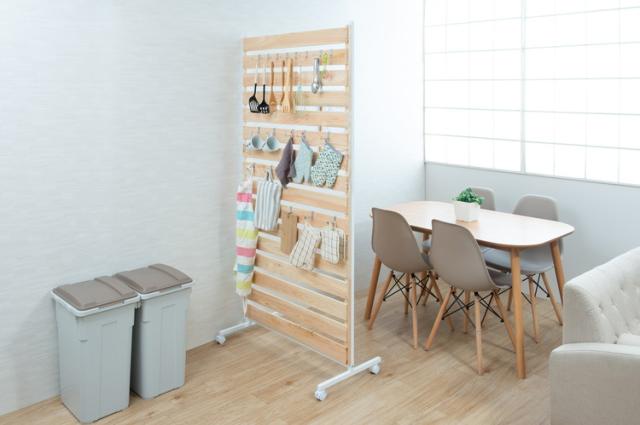 間仕切りパーテーションに、仕切るだけでなく、飾る・掛けるをプラスし、ヒノキを贅沢に使用した癒しのキャスター付き間仕切りパーテーションが新登場!