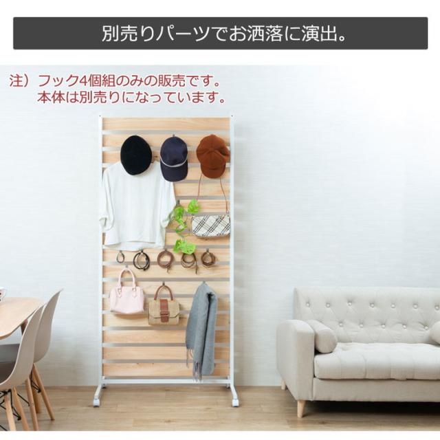 【本体は別売です】ヒノキを贅沢に使用した癒しの間仕切りウォールパーテーションにセットできる別売り4個組フック