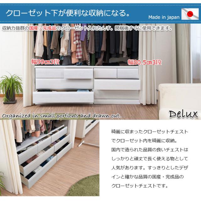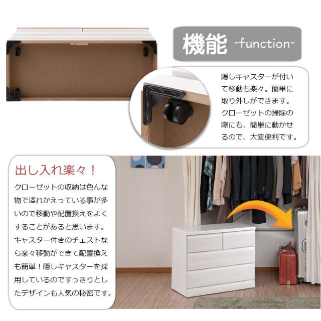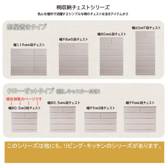日本製 クローゼットチェスト 幅80.5 3段 ホワイト チェスト 三段 クローゼット 収納 幅80.5cm 80.5cm幅 完成品 キャスター付き 北欧 木製 シンプル 天然木 桐 衣類収納 白 国産(代引不可)【送料無料】
