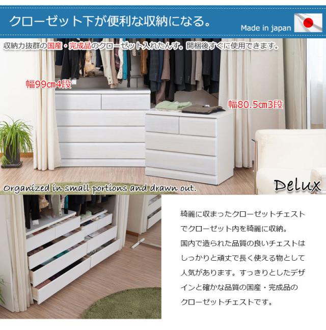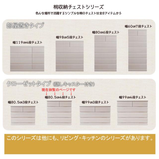日本製 クローゼットチェスト 幅80.5 4段 ホワイト チェスト 四段 クローゼット 収納 幅80.5cm 80.5cm幅 完成品 キャスター付き 北欧 木製 シンプル 天然木 桐 衣類収納 白 国産(代引不可)【送料無料】