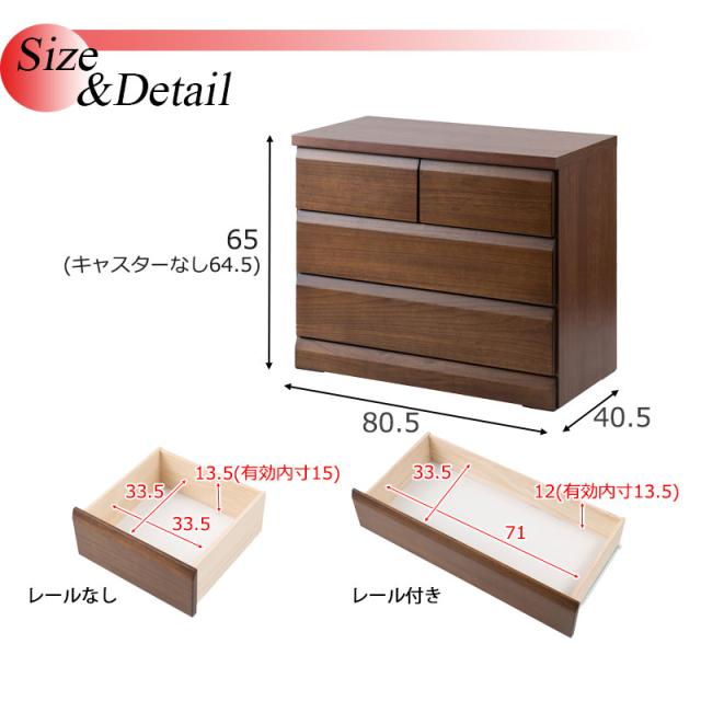 大引出しにはレールが取り付けられており、タップリ収納した引出しの開閉も楽々。