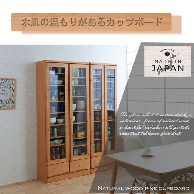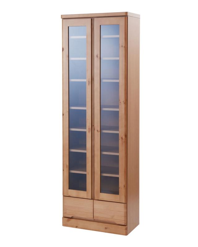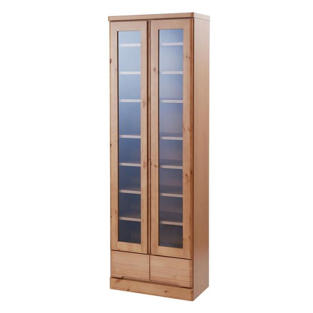 キッチンボード 幅60 ナチュラル ハイタイプ カップボード 食器棚 北欧 ナチュラル ガラス 扉棚 木製 天然木 薄型 省スペース 本棚 フリーボード ディスプレイ 収納(代引不可)【送料無料】