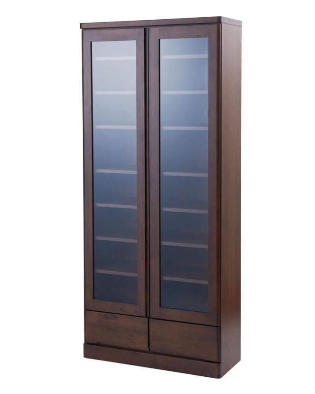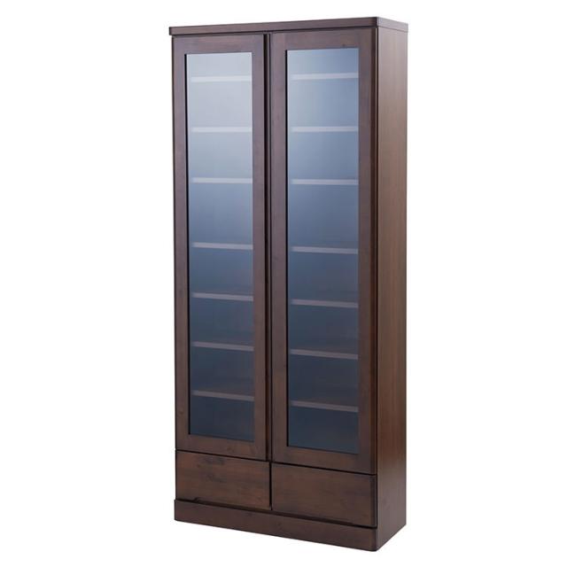 キッチンボード 幅80 ブラウン ハイタイプ カップボード 食器棚 北欧 ブラウン ガラス 扉棚 木製 天然木 薄型 省スペース 本棚 フリーボード ディスプレイ 収納(代引不可)【送料無料】