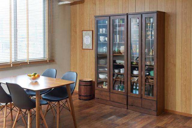 天然木の良さを細部にまで生かした高級仕上げ。ガラスに映りこむ日差し、ライトなどがより上品に雰囲気を醸し出します。フリーボードとしても収納&ディスプレイをお楽しみください。