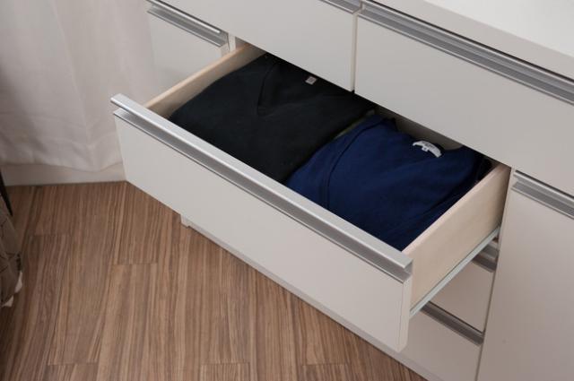●商品サイズ/本体:(約)幅100.5×奥行44.5×高さ82cm、●内寸/左扉部:(約)幅16×奥行22/39×高さ52cm、右扉部:(約)幅16×奥行22/39×高さ46(パイプ下)cm、上部左右引出:(約)幅22×奥行き33.5×深さ12(有効14)cm、上部左右引出横オープン:(約)幅16×奥行き22/39×高さ16cm、中央引出:(約)幅51.5×奥行き33.5×深さ12(有効14)cm、●可動棚/2枚