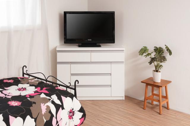 日本製 完成品 コーナーチェスト ミドルボード 国産 白 ホワイト 国産 幅100 おしゃれ 北欧 モダン 収納 テレビ台 ラック チェスト 4段(代引不可)【送料無料】
