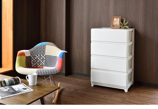 収納チェスト デコニー シーヴォ ワイド 4段 日本製 チェスト 収納ボックス 衣装ケース 収納ケース タンス リビングチェスト JEJアステージ DECONY CEVO ホワイト 白(代引不可)【送料無料】