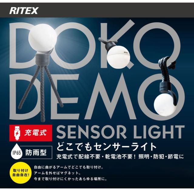 ムサシ 屋外 防犯ライト 人感センサーライト RITEX 充電式どこでもセンサーライト ASC-900 配線不要 防犯 強盗対策 充電式 LEDライト 玄関 ガレージ 照明 防犯グッズ ランタン(代引不可)【送料無料】