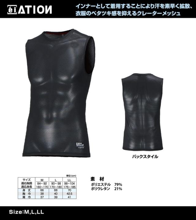 カジメイク ATION エイション クレーターメッシュ ノースリーブ メンズ ブラック 作業着 インナー 作業服 アンダーシャツ(代引不可)