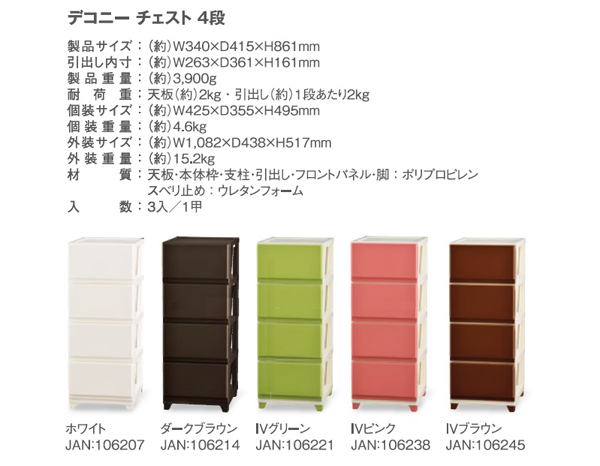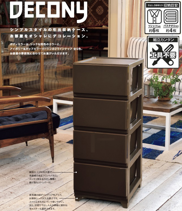 収納チェスト デコニー 4段 日本製 チェスト 収納ボックス 衣装ケース 収納ケース タンス リビングチェスト JEJアステージ DECONY ホワイト 白 クローゼット収納(代引不可)【送料無料】