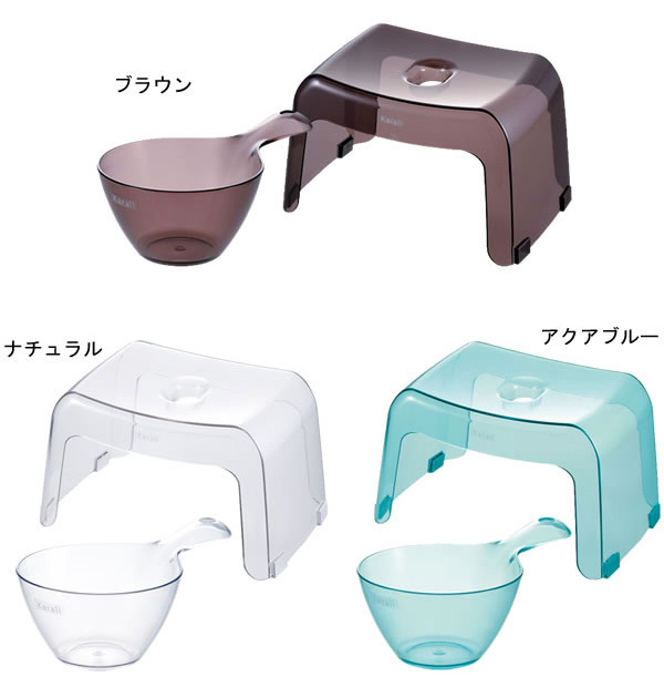 日本製 リッチェル カラリ バス用品2点セット 湯おけ×腰かけ 座面高さ20cm 選べるカラー 風呂椅子20cm おしゃれ バスチェア 風呂 イス 桶 湯桶 バススツール 浴用品 入浴 透明 クリア(代引不可)【送料無料】