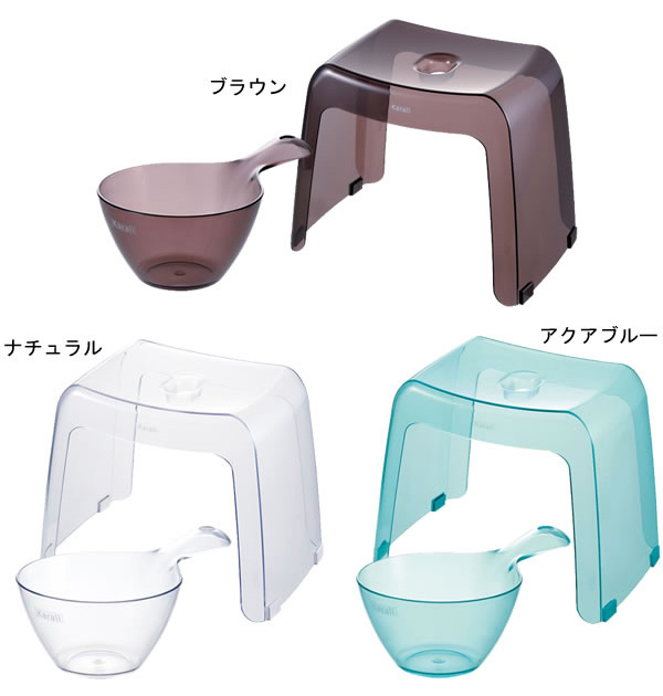 日本製 リッチェル カラリ バス用品2点セット 湯おけ×腰かけ 座面高さ30cm 選べるカラー 風呂椅子30cm おしゃれ バスチェア 風呂 イス 桶 湯桶 バススツール 浴用品 入浴 透明 クリア(代引不可)【送料無料】