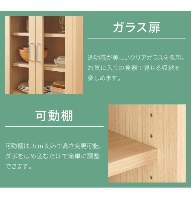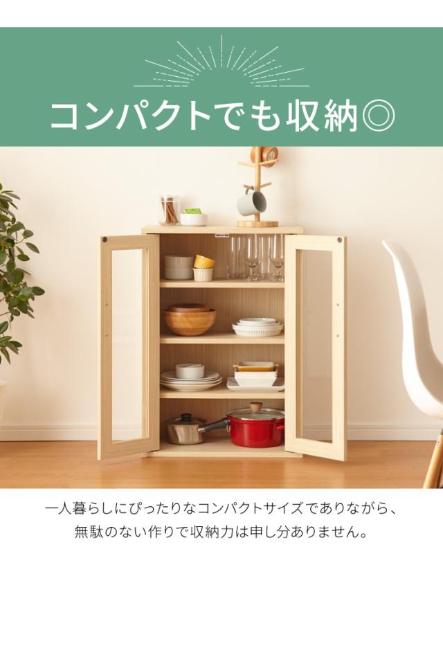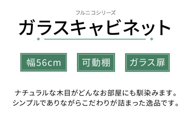 キャビネット フルニコ 幅56.6cm ナチュラル 大容量 収納 高さ80cm 木目調 ガラス扉 シンプル カフェ風 北欧 おしゃれ(代引不可)【送料無料】
