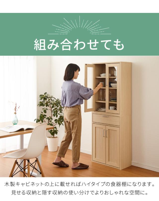同シリーズFUL-8055DHNAの上に重ねて高さ160cmの食器棚としてもご利用できます。