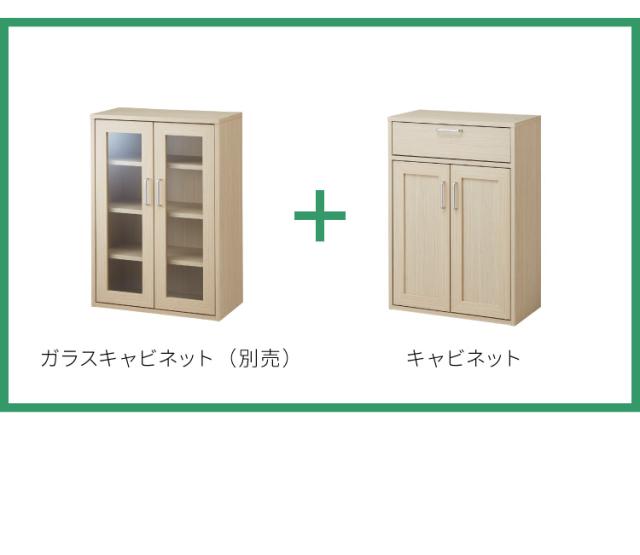 ガラスキャビネット 引き出し付 ナチュラル