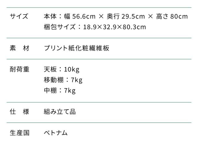 本体:幅56.6cm × 奥行29.5cm × 高さ80cm