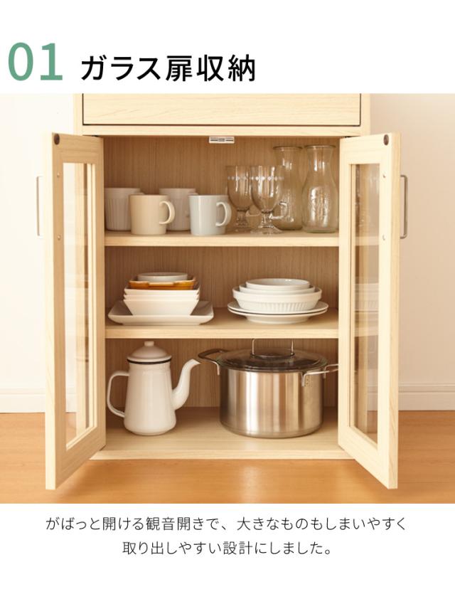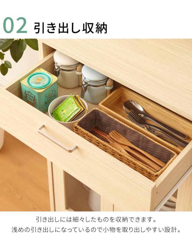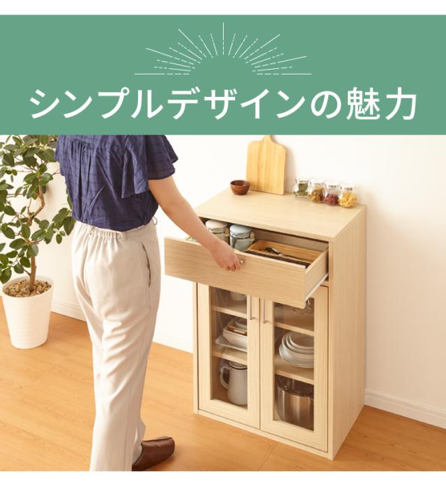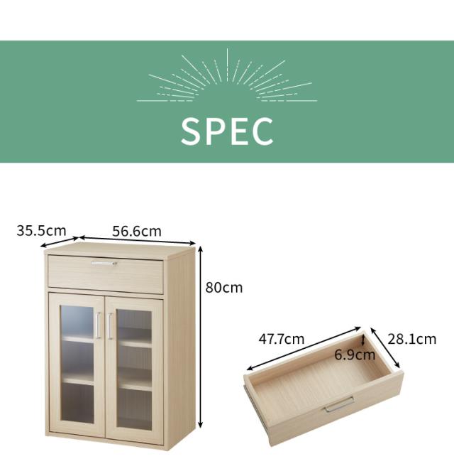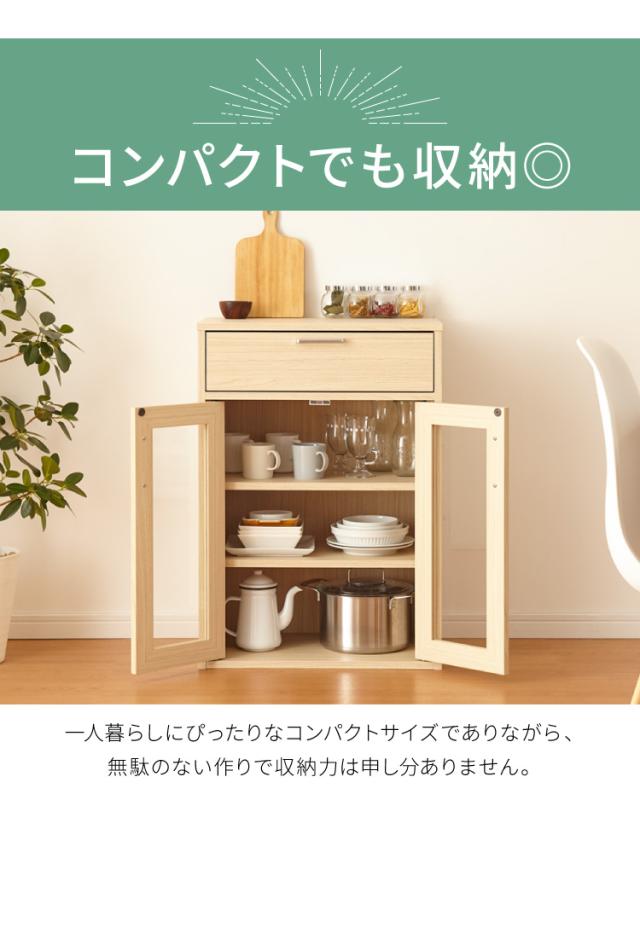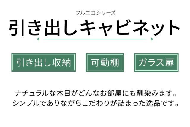 キャビネット 引き出し付き フルニコ 幅56.6cm ナチュラル 大容量 収納 高さ80cm ガラス扉 シンプル 北欧 おしゃれ(代引不可)【送料無料】
