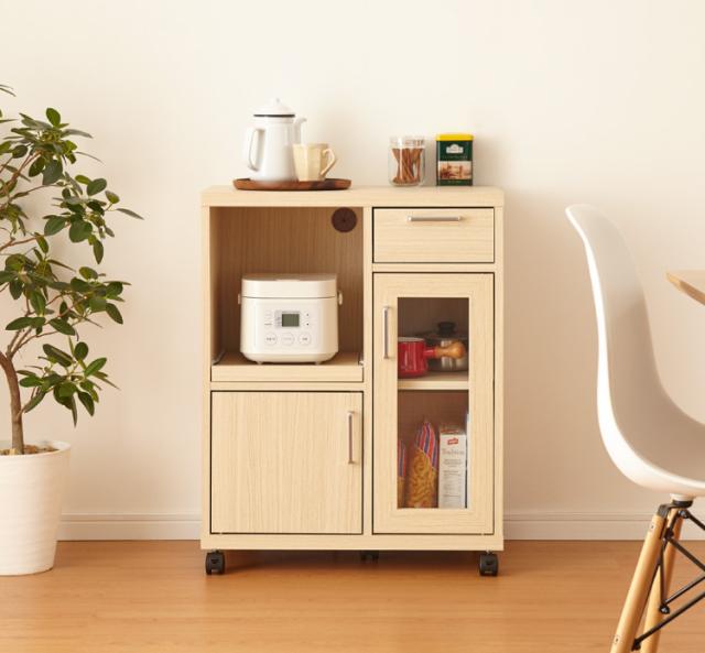 一人暮らしのキッチンなどにおすすめ。キッチン家電や食器をまとめて収納できるオールインワン収納のカウンターワゴンです。
