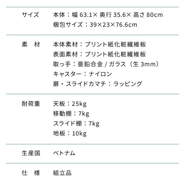 本体:幅63.1×奥行35.6×高さ80cm