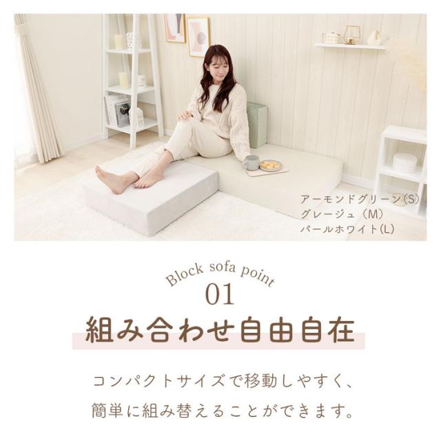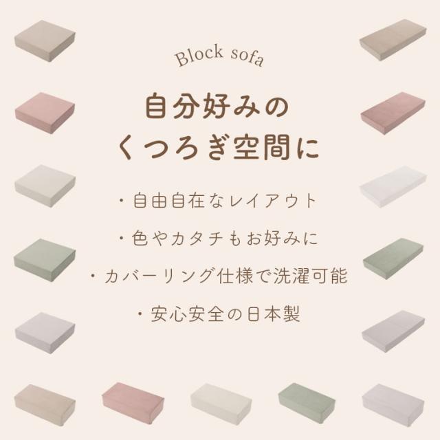 ブロックソファ Mサイズ 60×60×15cm ベロア生地 レイアウト自由 組立品 積み木ソファ ローソファ マットレス リビング 寝室 子供部屋 かわいい 椅子 ブロック 積み木 日本製 おしゃれ 洗えるカ