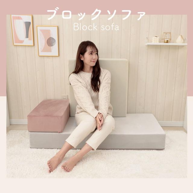 ブロックソファ Lサイズ 60×120×15cm ベロア生地 レイアウト自由 組立品 積み木ソファ ローソファ マットレス リビング 寝室 子供部屋 かわいい 椅子 ブロック 積み木 日本製 おしゃれ 洗える