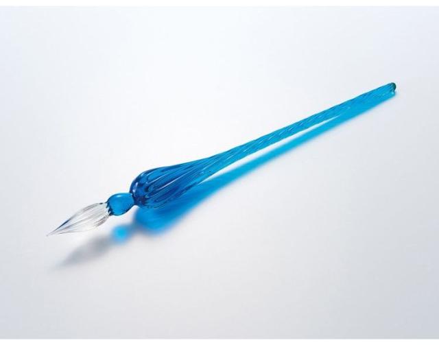 透明感のある美しさとデザイン、なめらかな書き心地のガラスペン。丸みを帯びた優雅な佇まい。雫が流れ落ちるような曲線が印象的です。