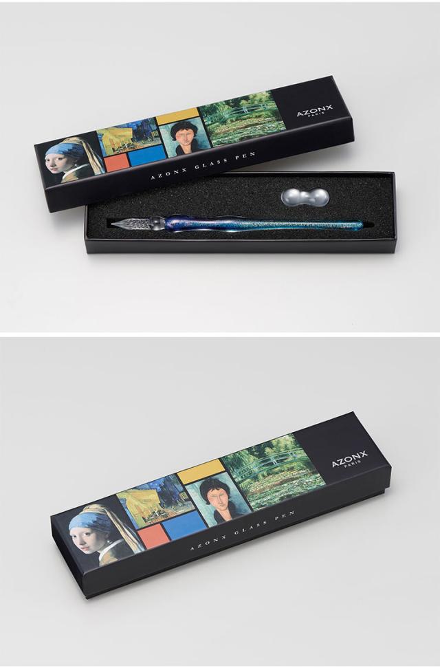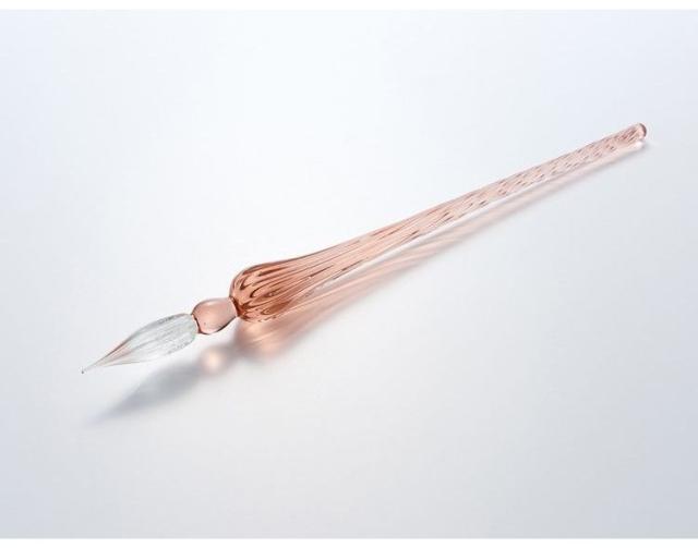 透明感のある美しさとデザイン、なめらかな書き心地のガラスペン。丸みを帯びた優雅な佇まい。雫が流れ落ちるような曲線が印象的です。
