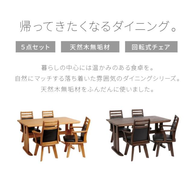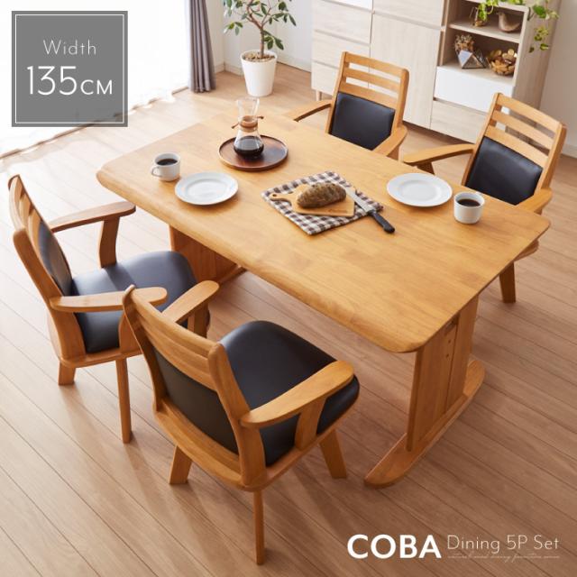 ダイニングテーブル 5点セット ダイニングセット 4人掛け コバ ダイニング5点セット 135幅 4人掛け用 モダン 北欧 おしゃれ かわいい 天板 無垢 無垢材 回転 PCデスク リモート リモートワーク シンプル レトロ (代引不可)【送料無料】