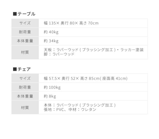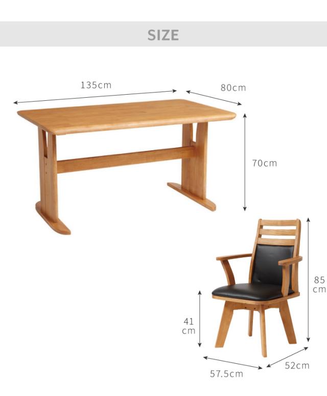 テーブル135cm | テーブル180cm | 回転チェア単品 | ダイニングチェア2脚セット |