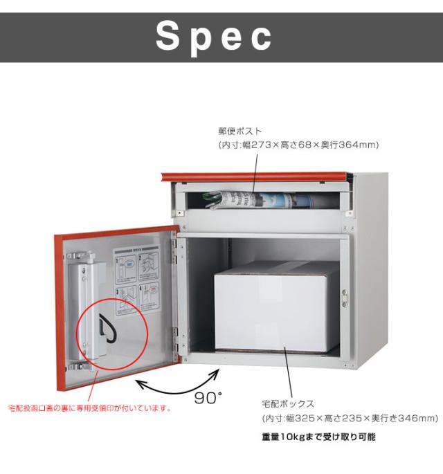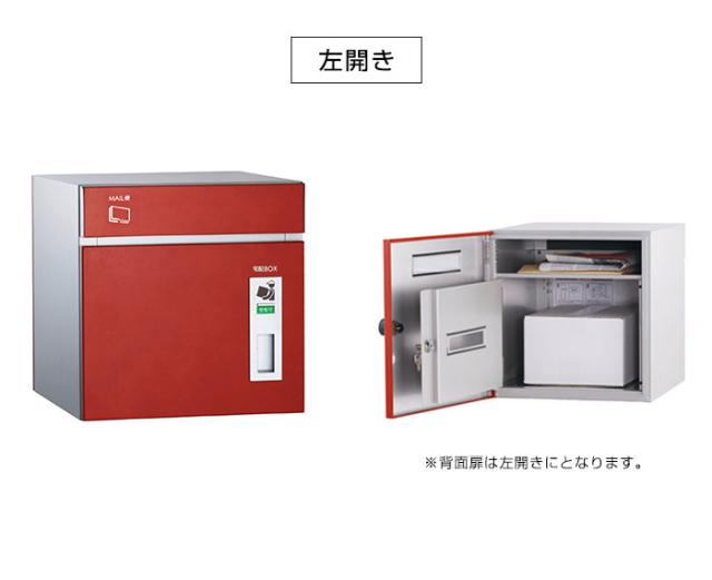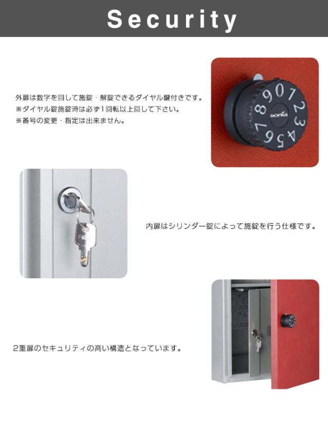 留守でも安心。我が家の荷受け係。不在時でも荷物を受け取ることができる宅配ポスト。郵便ポストと宅配ボックスが一体となった、すっきりとしたデザインが特徴。正面から投入、取り出しは背面から。外扉は数字を回して施錠解錠できるダイヤル錠付きです。内扉はシリンダー錠で施錠を行うタイプです。ダンボールの規格サイズでは、宅配80サイズ(3辺の合計が80cm)まで、重量は18kgまで荷物が受け取れます。壁厚247mm以下の埋め込み設置の場合、オプションの壁面埋込用補助台座が必要となります。オプション品のみのご発注の場合は、別途運賃が必要となります。