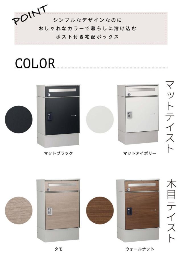 おしゃれな木目とマットカラーの組立式ポスト付き宅配ボックス。