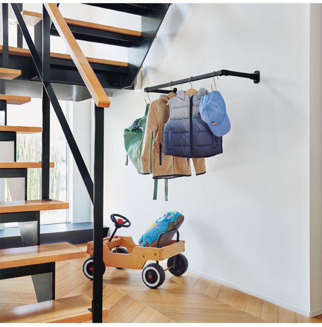 ハンギングバーをランドリーバーとして設置することで、空間を有効に使いつつ日々の家事を効率化できます。共働きのご家庭やPM2.5、花粉対策で洗濯物を室内に干す方にピッタリです。