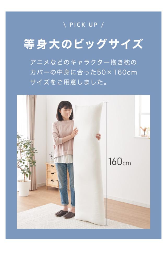 ヌード抱き枕 160cm×50cm 日本製 アニメ等身大用 抱き枕 中身 TEIJIN製中綿使用 帝人 テイジン 洗える ウォッシャブル 本体 中材 妊婦 マタニティ クッション アニメ キャラクター 抱き枕カバー用【送料無料】