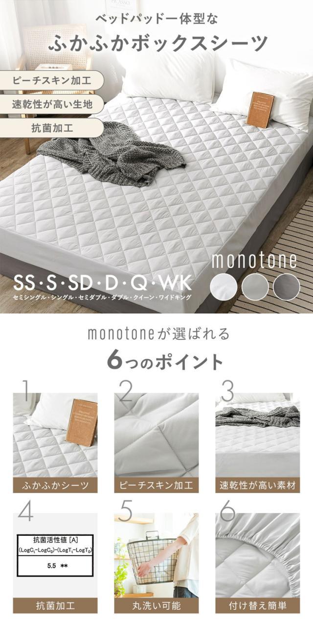 【2点セット】 ボックスシーツ 一体型 モノトーン パッド一体型ボックスシーツ シングル カバー 敷きパッド ベッドシーツ ベッドカバー 洗濯可 マットレスカバー 春 夏 敷きパッド ベッドパ