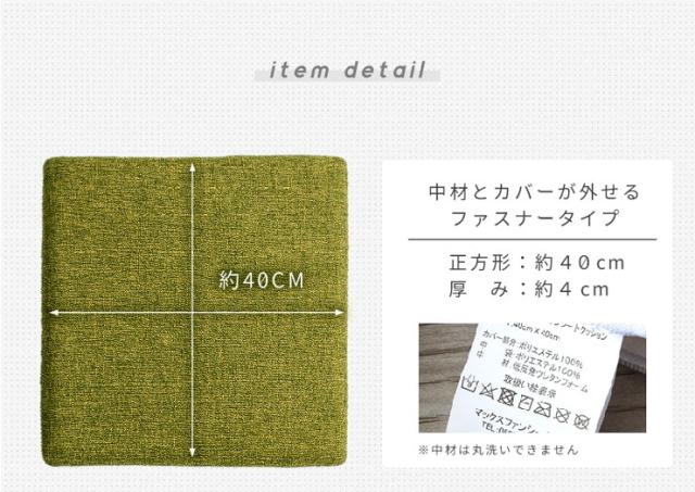 ドビー織りの風合い豊かな厚手の生地はカバーと中材とが取り外せる便利なファスナー付き。