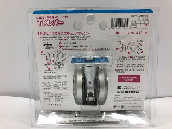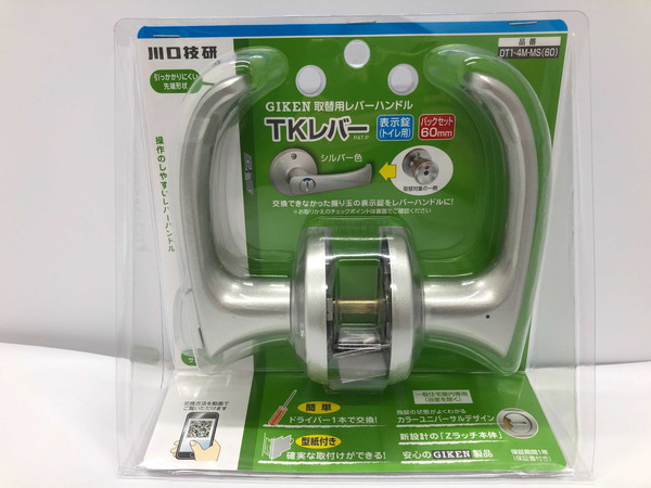 川口技研 取替レバーハンドル ドアレバー TKレバー 表示錠 DT1-4M-MS 60 シルバー バックセット60mm 握り玉取換 簡単【送料無料】