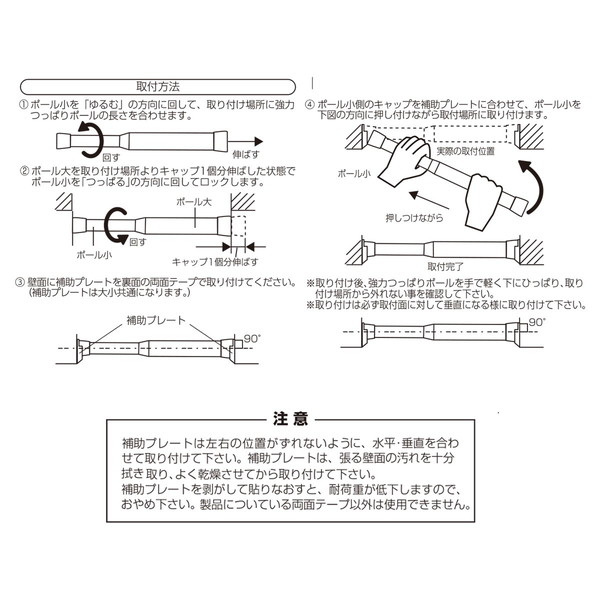 取り付け後は定期的につっぱり状態を確かめ、弱い場合は再度取り付けを行い、つっぱり強度を高めてください。
