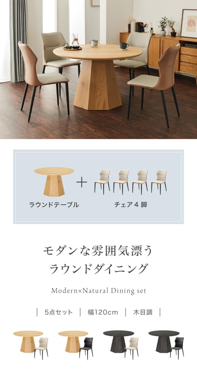 ダイニングセット 4人掛け 5点セット 円形テーブル 120cm 突板 天然木 メラミン ダイニングチェア おしゃれ リビングテーブル ダイニング 食卓 ステッチ キルティング 丸テーブル チェア(代引